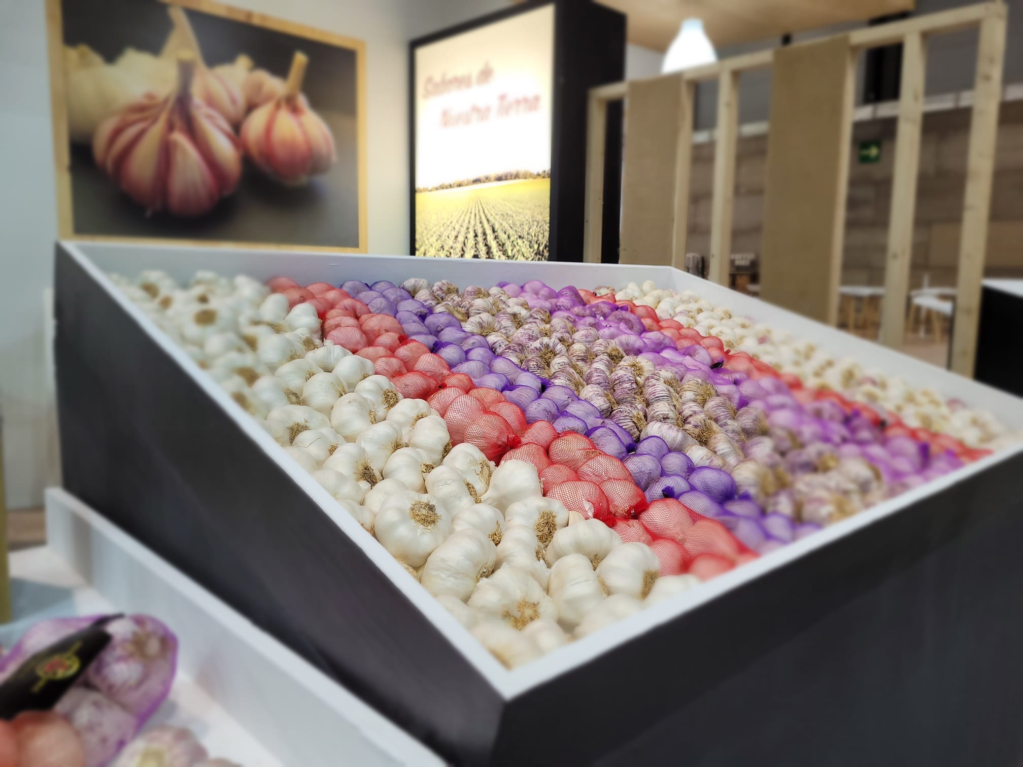 Esta diversidad de productos va ligada a la variedad de tipos de envasado. Nos adaptamos a lo que cada cliente nos pide. Por ejemplo: los presentamos en cabezas sueltas, en manojos o ristras y podemos envasarlos en bolsas de malla, sacos o cajas, entre otros, desde unos pocos gramos hasta kilos, nos adaptamos a cualquier petición del cliente.